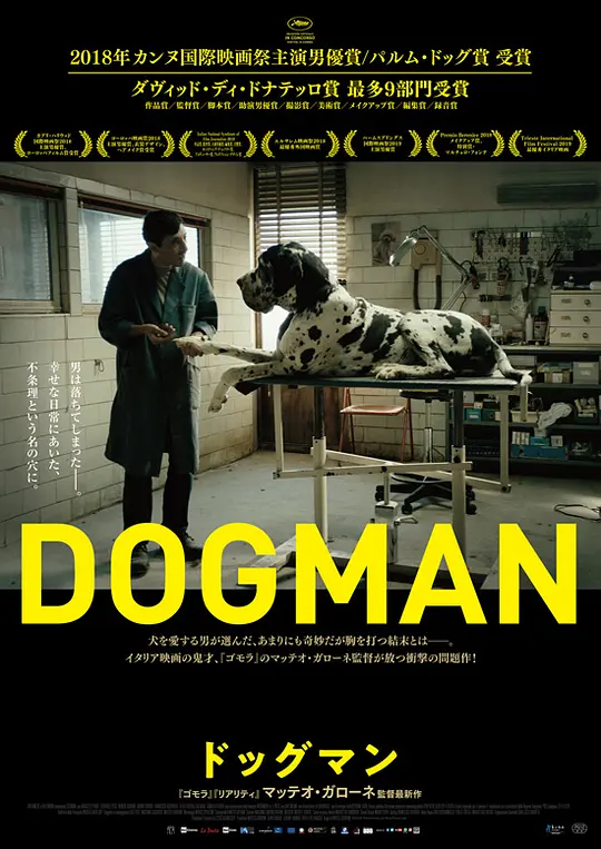 一个平凡的意大利小镇上,中年男子马塞洛开着一家名为“dogman”的宠物清洁店。马塞洛是一个好人,他尊重弱小,认真工作,在友人邻里中有着不错的人缘。虽然女儿跟随前妻生活,但他依然和女儿保持着良好的父女关系。表面上看,马塞洛就是一个地道、平凡的老实人。但他却有着诸多损友,西蒙就是其中之一。他出狱后开始在街区内敲诈勒索,很快便扰乱了当地的平静,最终害得马塞洛入狱。出狱后,马塞洛被歧视、谩骂。他去找西蒙求助,却被粗暴对待。至此,马塞洛“醒悟”了,他装出一副讨好的样子,设计西蒙被关进狗笼。他只想要一个道歉,但西蒙在反抗时却意外身亡。马塞洛平静下来,拖着西蒙的尸体出街,为了证明自己讨回了公道。然而,小镇上的人纷纷离去,只留下愤怒、哀伤、麻木又茫然的马塞洛。收起